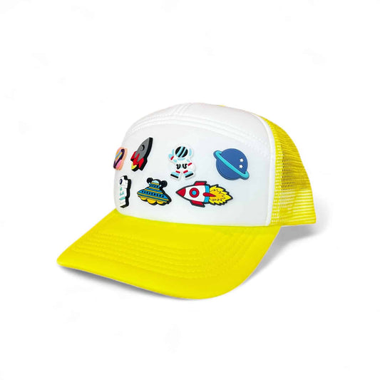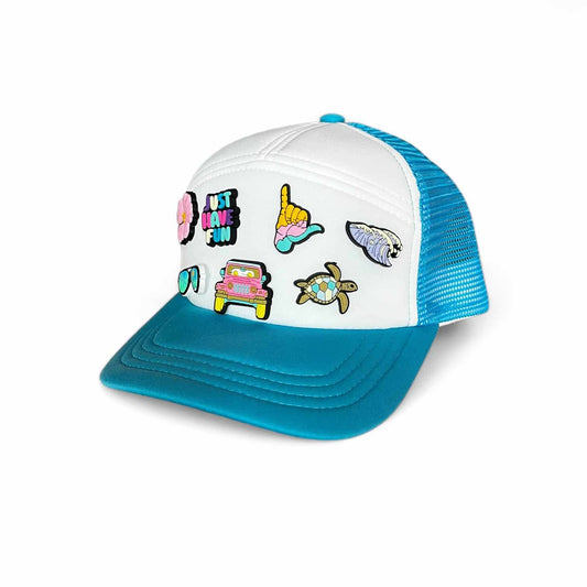 The first hat compatible with shoe charms. Now, kids can wear their favorite charms on their hats and their shoes.
