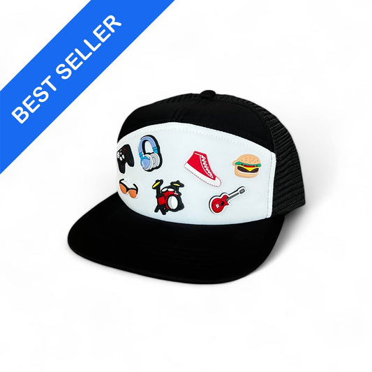 The first hat compatible with shoe charms. Now, kids can wear their favorite charms on their hats and their shoes.